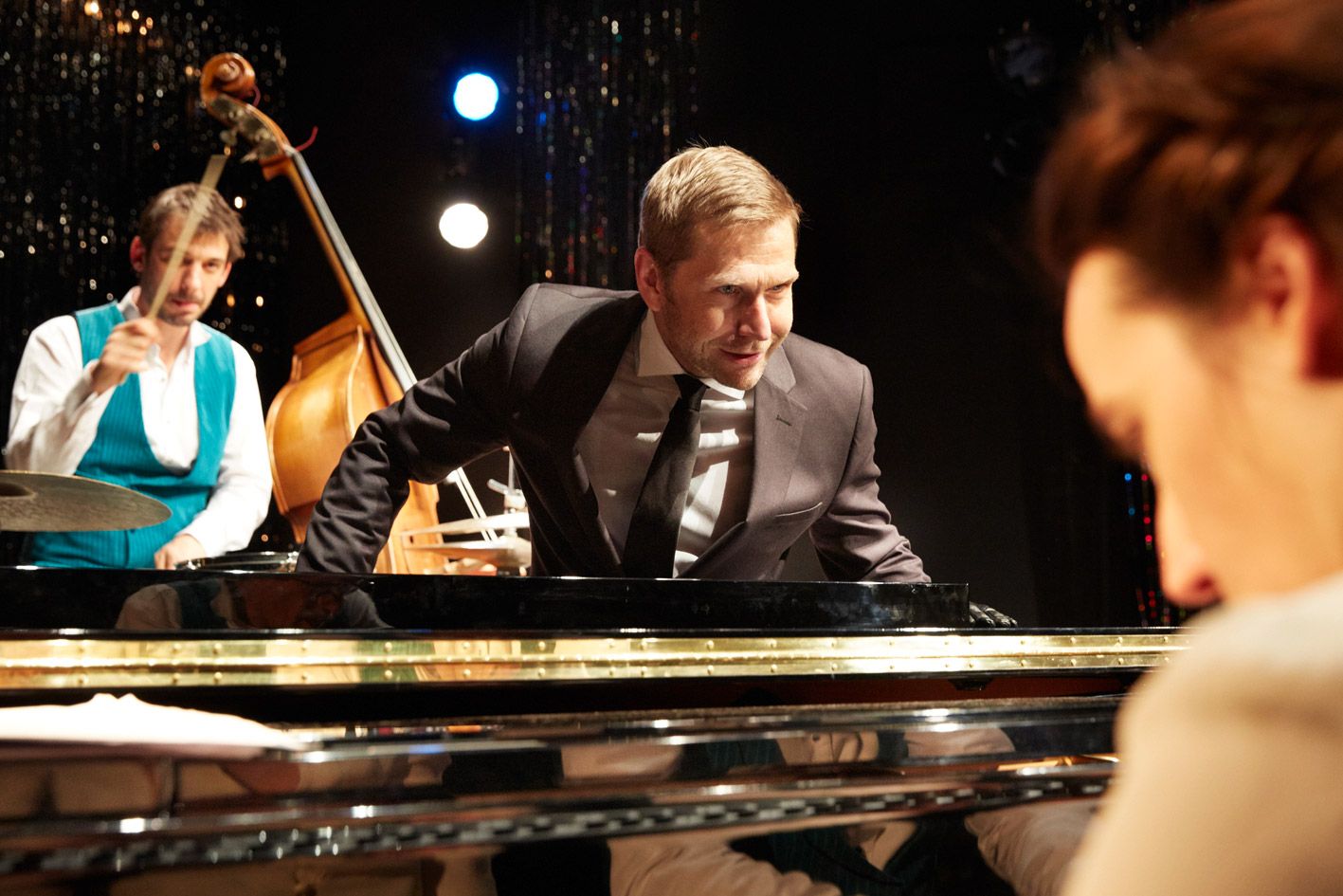 Mal übermütig leichtfüssig, dann wieder fein und melancholisch erzählt das Ensemble um Jürg Kienberger und Nikolaus Schmid vom seltsamen Leben des Pianisten „Novecento“, der ein Leben lang als Blinder Passagier den Ozean überquert und nie einen Fuss an Land gesetzt hat.